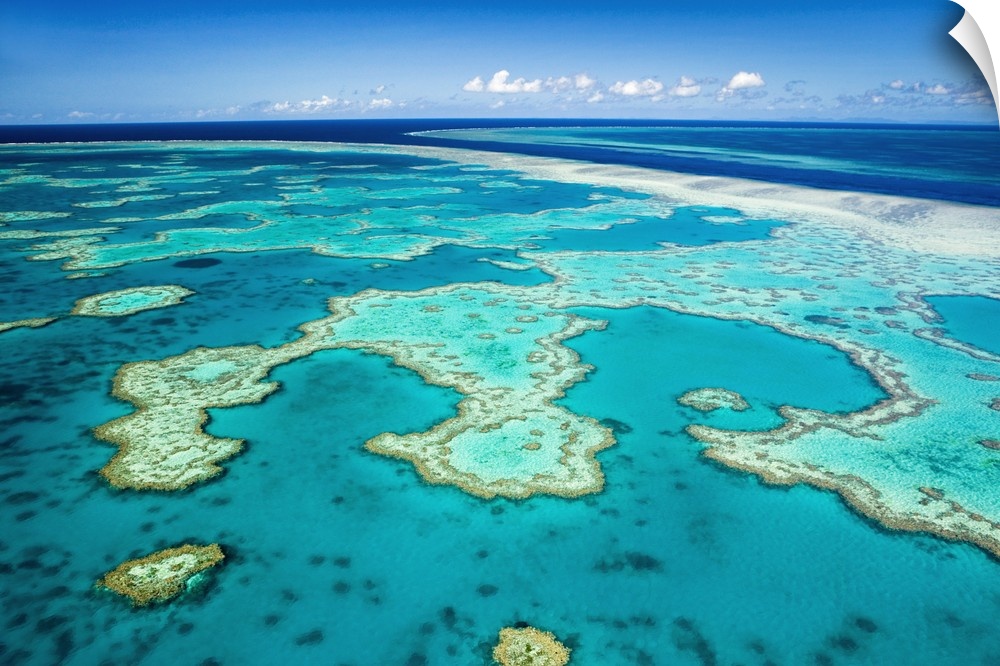 <p>Australia, Queensland, Whitsundays, Great Barrier Reef Marine Park. Aerial view of coral formations at Hardys Reef.</p>