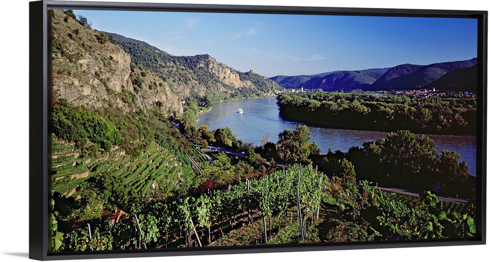 <p>Austria, Nieder..sterreich, D..rnstein, Vineyards and Danube river</p>