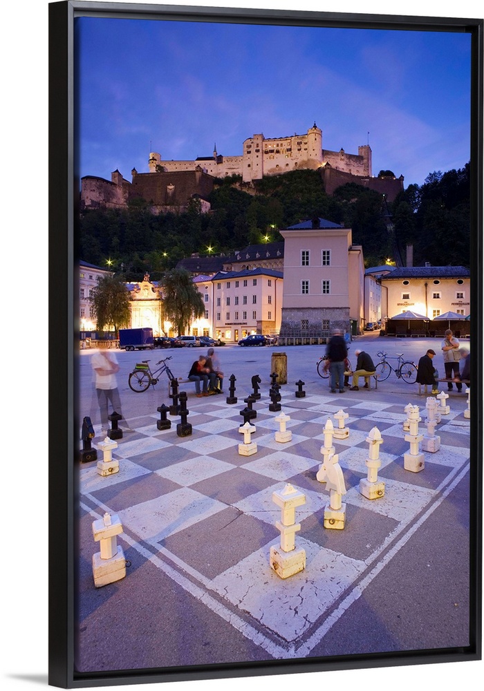 <p>Si gioca a scacchi sulla Kapitelplatz, una delle 3 piazze che circondano il duomo di Salisburgo. Sullo sfondo in alto il Festung Hohensalzburg, il castello dei Principi Arcivescovi di Salisburgo.</p>