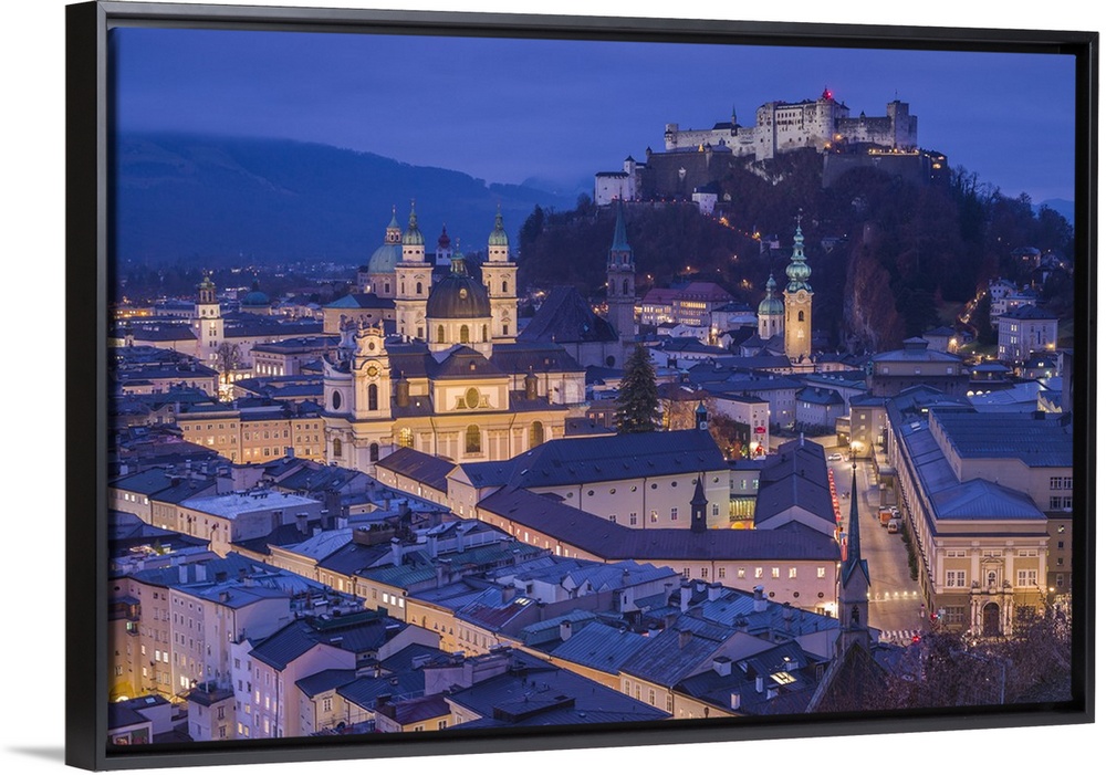 <p>Austria, Salzburgerland, Salzburg, elevated city view, dusk</p>