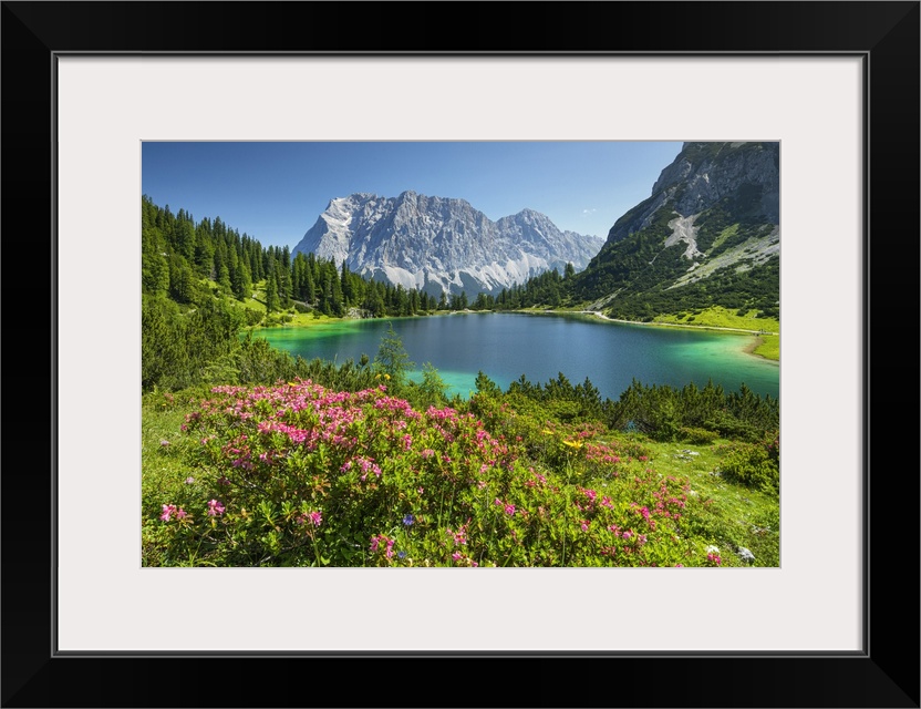 <p>Austria, Tyrol, AuBerfern, Ehrwald, Zugspitze Mountain, Austrian Alps, Blooming alpine roses at Seebensee, Zugspitze Group in Ehrwalder Alm hiking area, Tiroler Zugspitz Arena.</p>