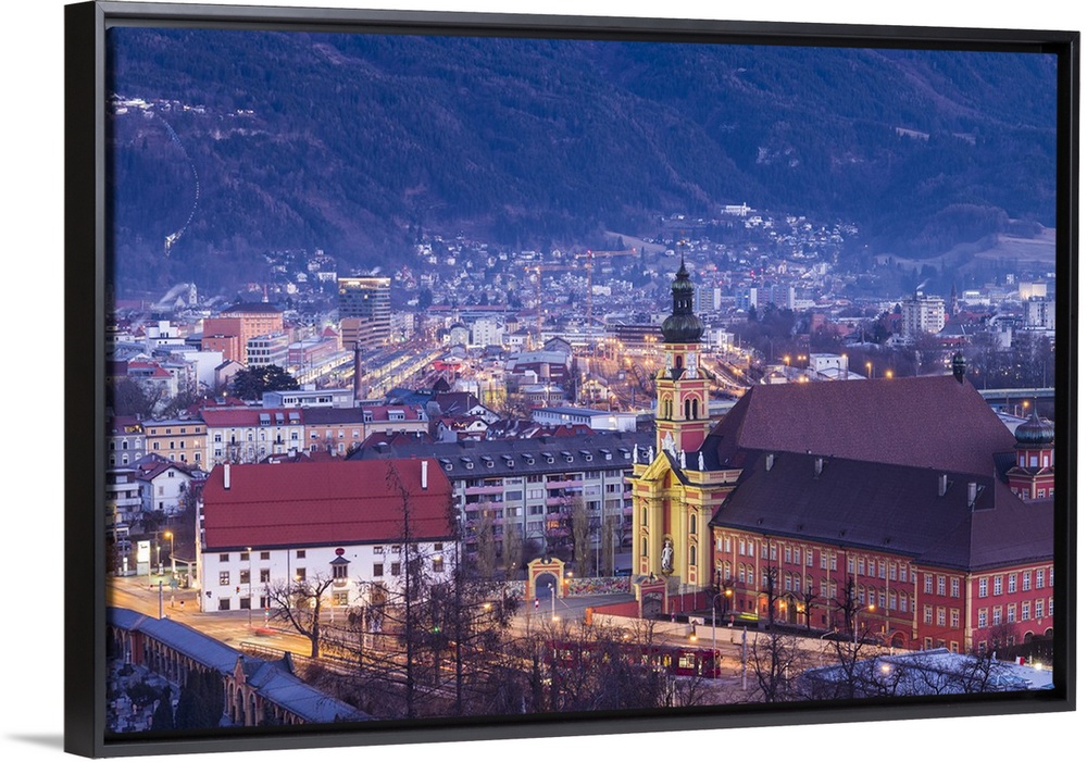 <p>Austria, Tyrol, Innsbruck, elevated view of the Wilten Abbey Church, dawn, winter</p>
