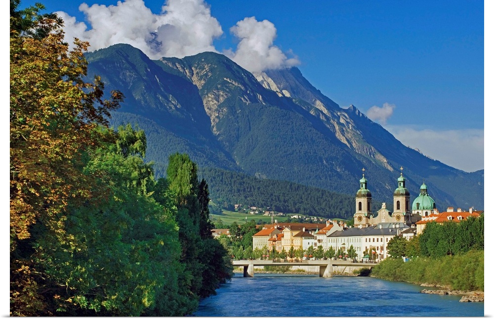 <p>Veduta dell'Altstadt, il centro storico di Innsbruck, lungo il fiume Inn.</p>