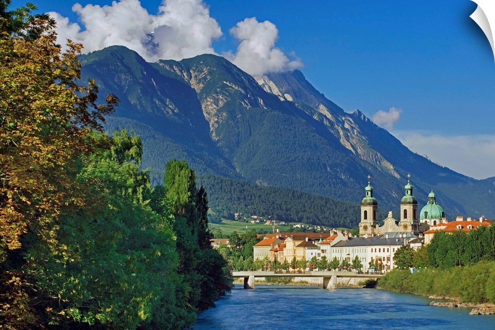 <p>Veduta dell'Altstadt, il centro storico di Innsbruck, lungo il fiume Inn.</p>