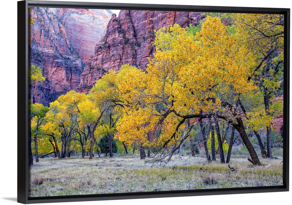 <p>Fall colors decorate cottonwoods in a field of Zion National Park's Grotto. This park is should be on every nature lover's bucket list, and autumn is a great time to be there.</p>