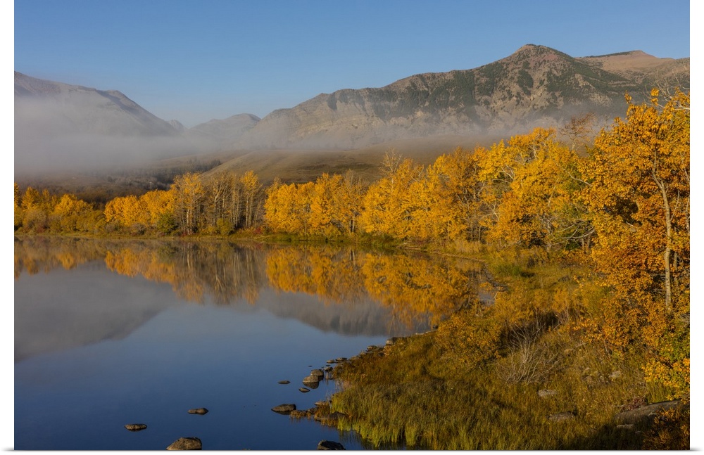 <p>Autumn color reflects into Maskinonge Lake in Waterton Lakes National Park, Alberta, Canada</p>