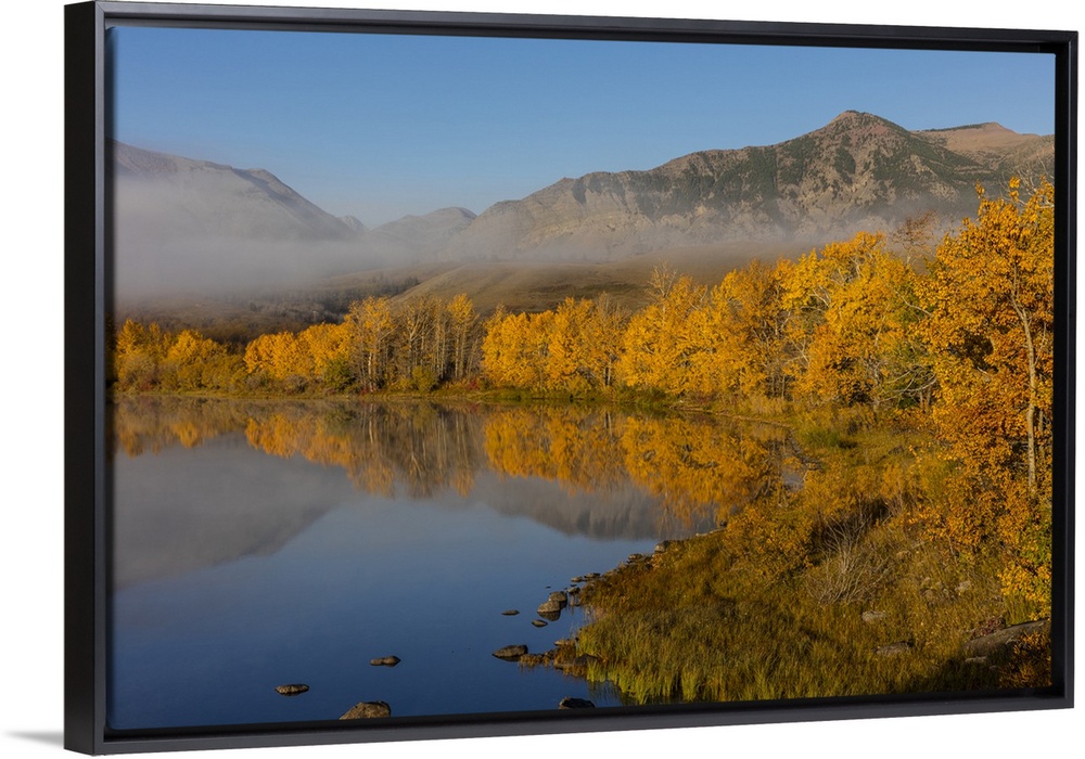 <p>Autumn color reflects into Maskinonge Lake in Waterton Lakes National Park, Alberta, Canada</p>