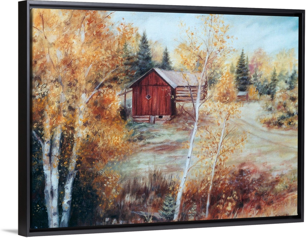 <p>Contemporary artwork of a barn in the fall in Ontario, Canada.</p>