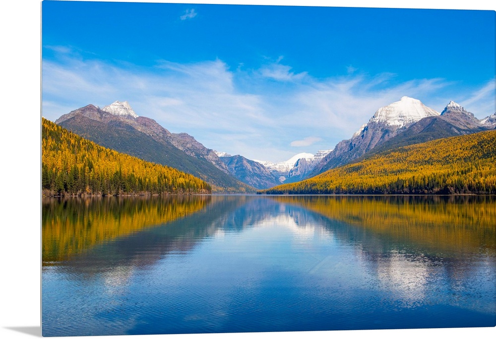 <p>Autumn colours on Bowman Lake, Glacier National Park, Montana, USA.</p>