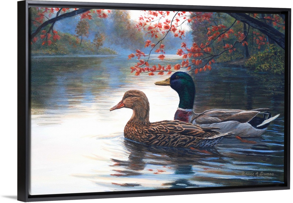 <p>Contemporary artwork of a pair of ducks in the water.</p>