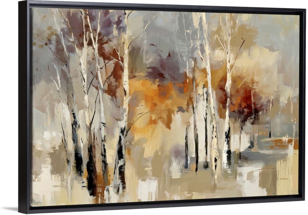 <p>A serene abstract forest artwork featuring slender birch trees rising through a softly layered autumn landscape. Warm shades of beige, gold, rust, and muted gray blend together, creating a calm, atmospheric scene with gentle movement and depth. This artwork brings a peaceful, seasonal touch to any home, perfect for those who love nature, quiet moments, and earthy tones.</p>