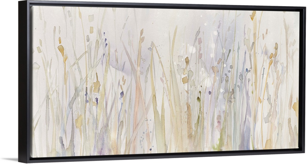 <p>Abstract watercolor painting of grass in Fall purple, orange, and green hues</p>