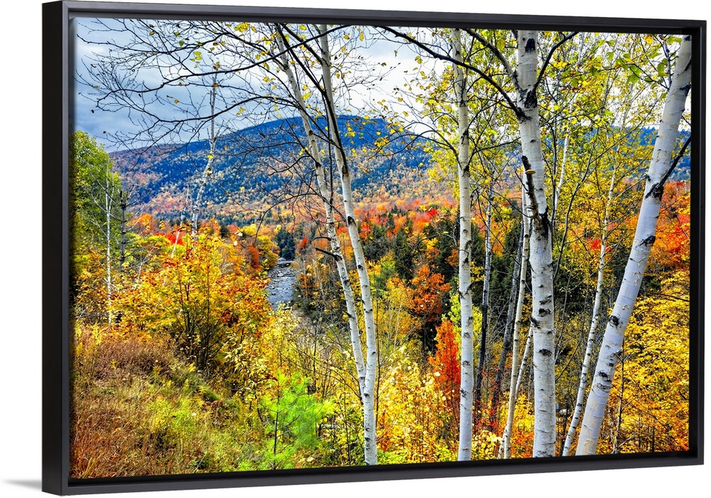 <p>Autumn color explosion in the white mountains with the Pemigewasset River, Franconia, New Hampshire, USA.</p>