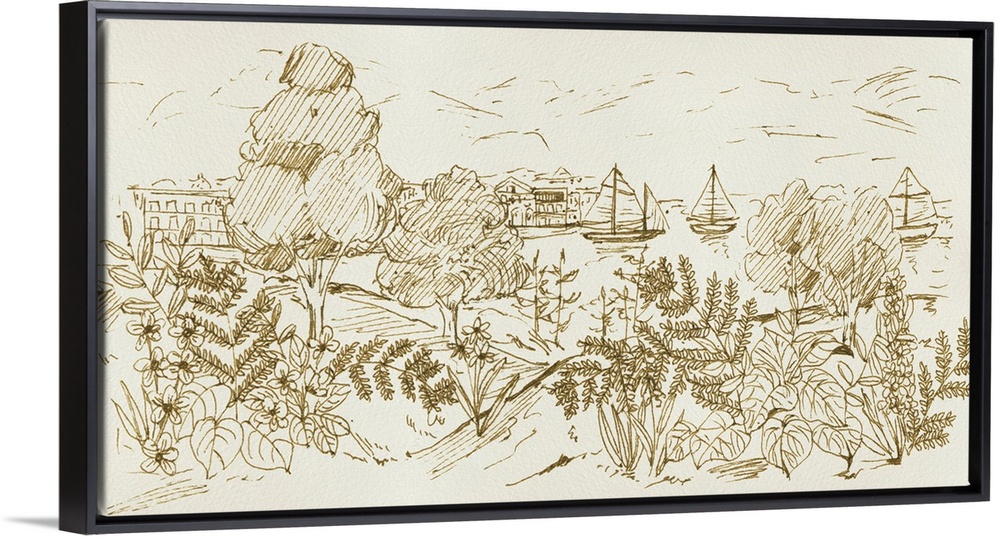 Art Coastal Brown Wall Art Decorative Art Drawing Landscapes Seascapes Transportation Boat Sailboat Melissa Wang