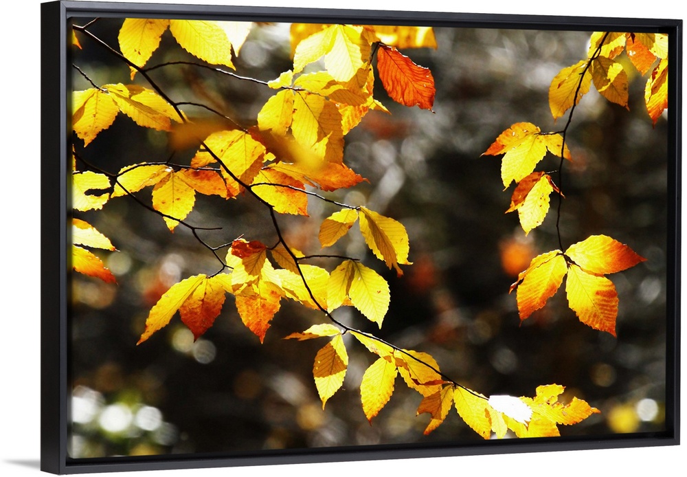 <p>Sunlight hitting bright yellow leaves in the fall.</p>