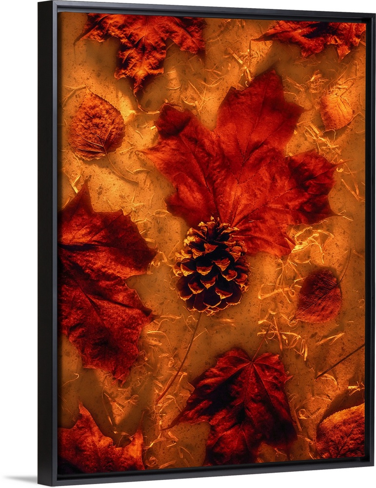 <p>Autumn Maple Leaves and Pine Cone</p>