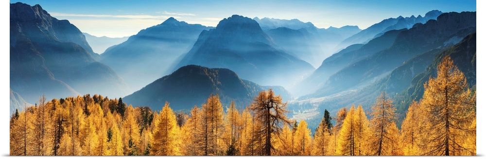 <p>Autumn Mist In Julian Alps, Triglav National Park, Slovenia, Europe</p>