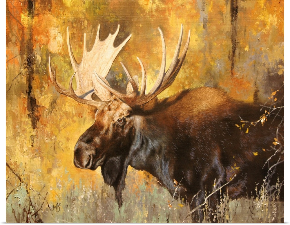 Art Contemporary Art Mark Kelso Painting Wildlife Moose and Elk Yellow Wall Art
