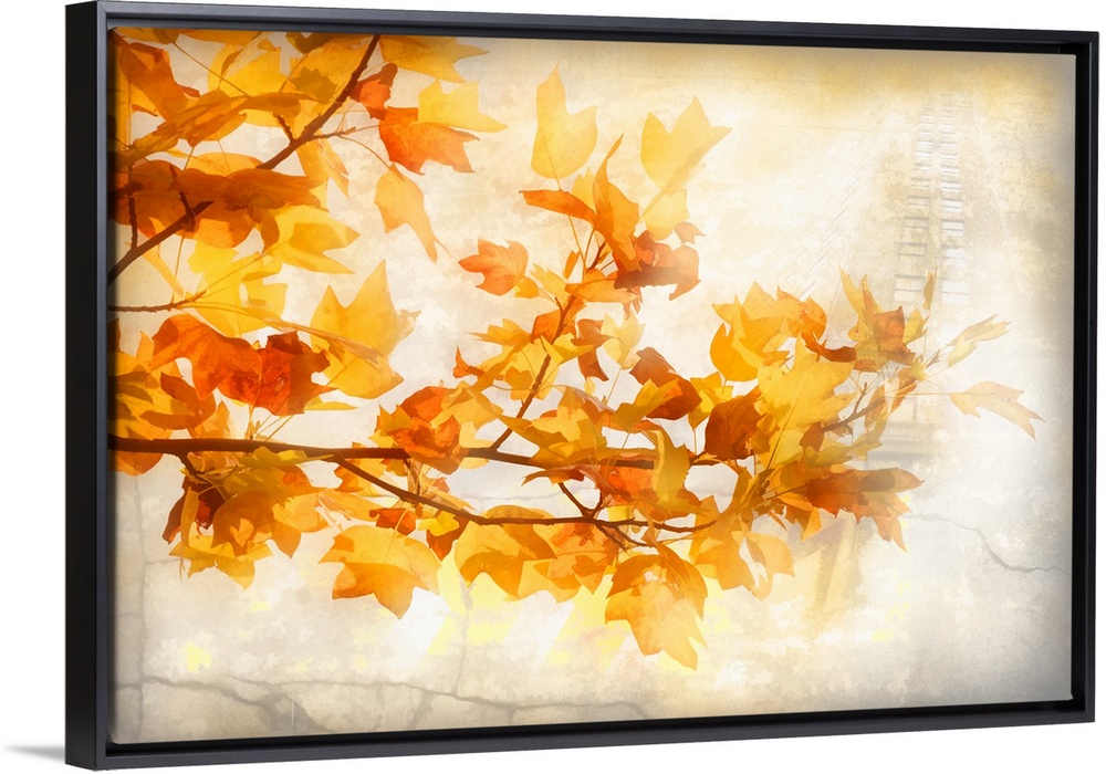 <p>Fall foliage on a tree branch. Photo with a texture</p>