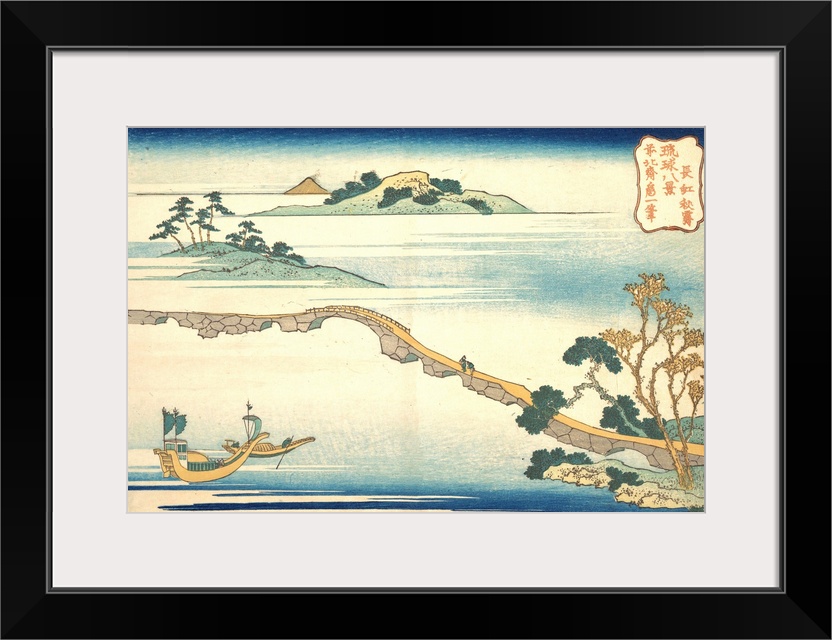 <p>Hokusai's prints of the Ryukyu were probably made to commemorate the Ryukyu mission's arrival at Edo in November 1832. Although the original gazetteer that inspired Hokusai was in black and white, his series is in exquisite color. We can see not only his use of color to heighten the exotic ambiance of the Ryukyu Islands, but also his imaginative power to make alien islands familiar in the guise of Eight Views. The artist carefully selected representative elements of the Eight Views, such as moon, sailboats and snow.</p>