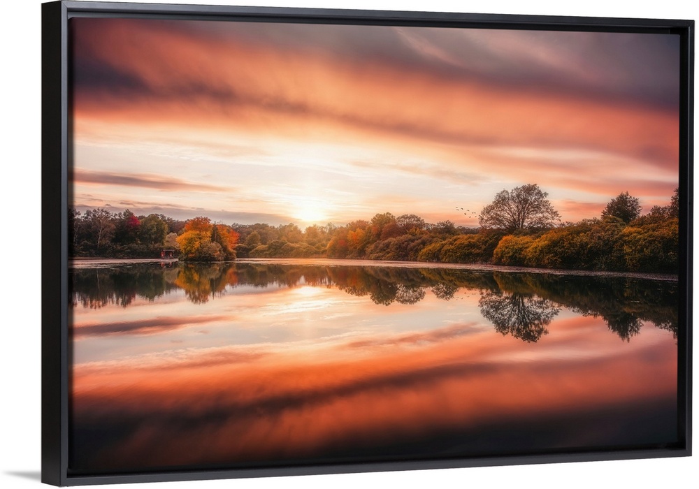 <p>Sunset over a lake in autumn with a beautiful reflection</p>