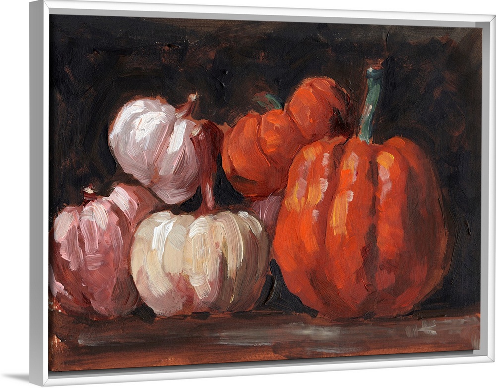 Art Brown and Burgundy Eerie Elegance Decorative Art Food and Drink Food Pumpkin Orange Wall Art Painting Jennifer Paxton Parker Still Life