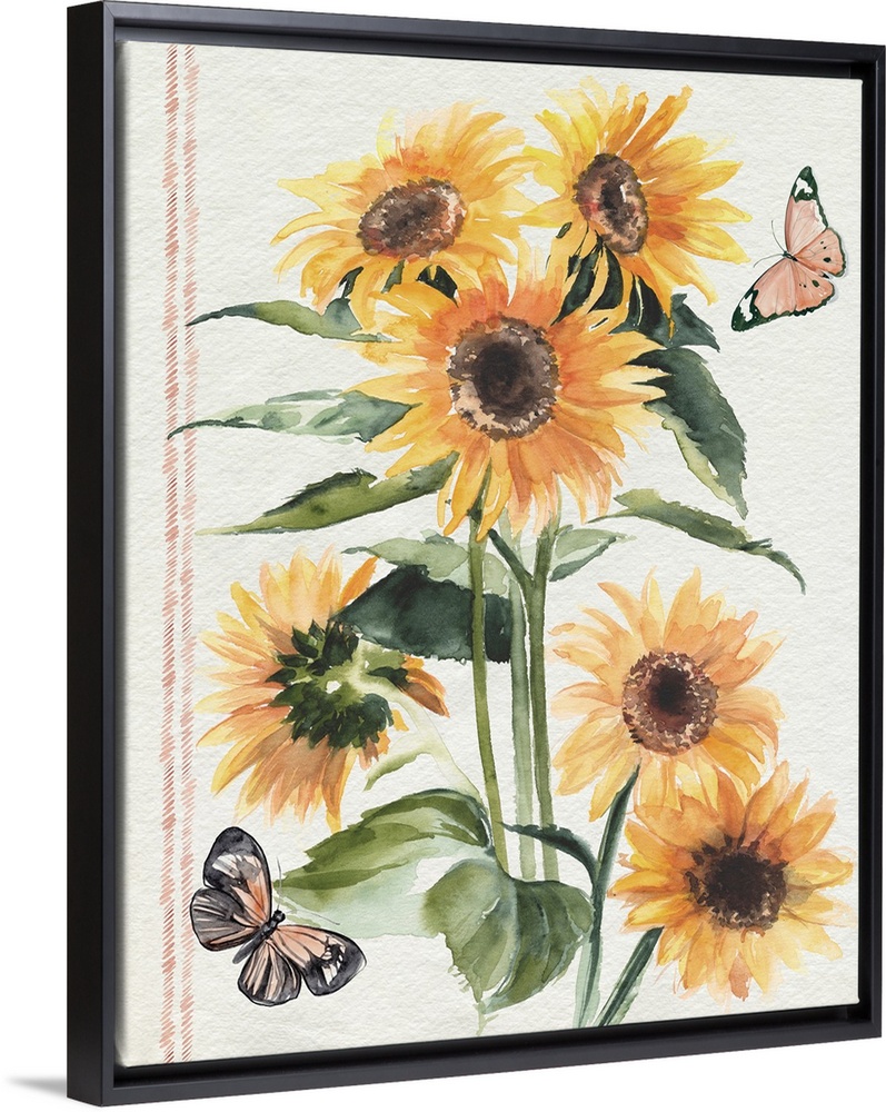 Art Decorative Art Florals Sunflower Painting Jennifer Paxton Parker Watercolor Wildlife Insect and Arachnid Butterfly Yellow Wall Art