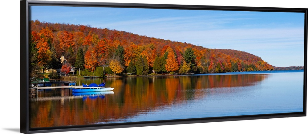 <p>Autumn trees at lakeshore, Lake Bowker, Quebec, Canada</p>