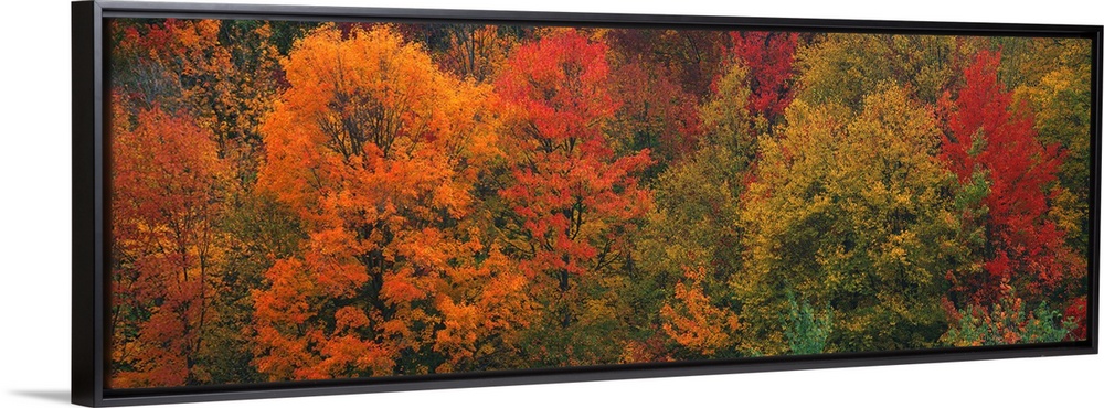 <p>Aerial photograph on a giant canvas of fall colored trees in Connecticut.</p>