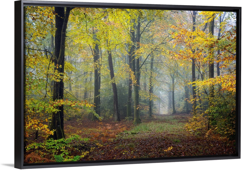 <p>Fine art photo of a misty forest in autumn colors in France.</p>