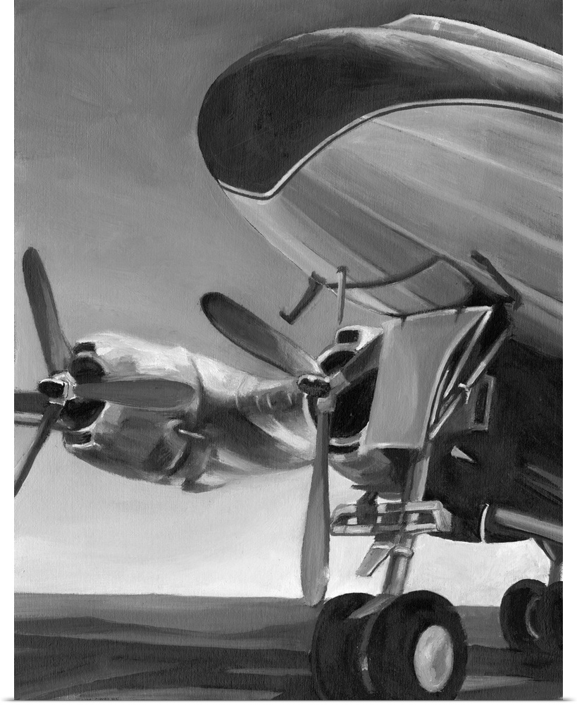 <p>Brush strokes in gray tones create a reflective plane and propeller in this contemporary artwork.</p>