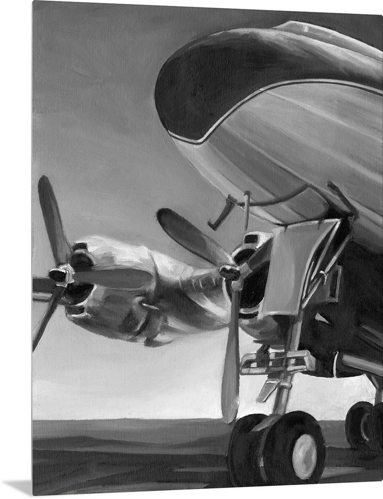 <p>Brush strokes in gray tones create a reflective plane and propeller in this contemporary artwork.</p>