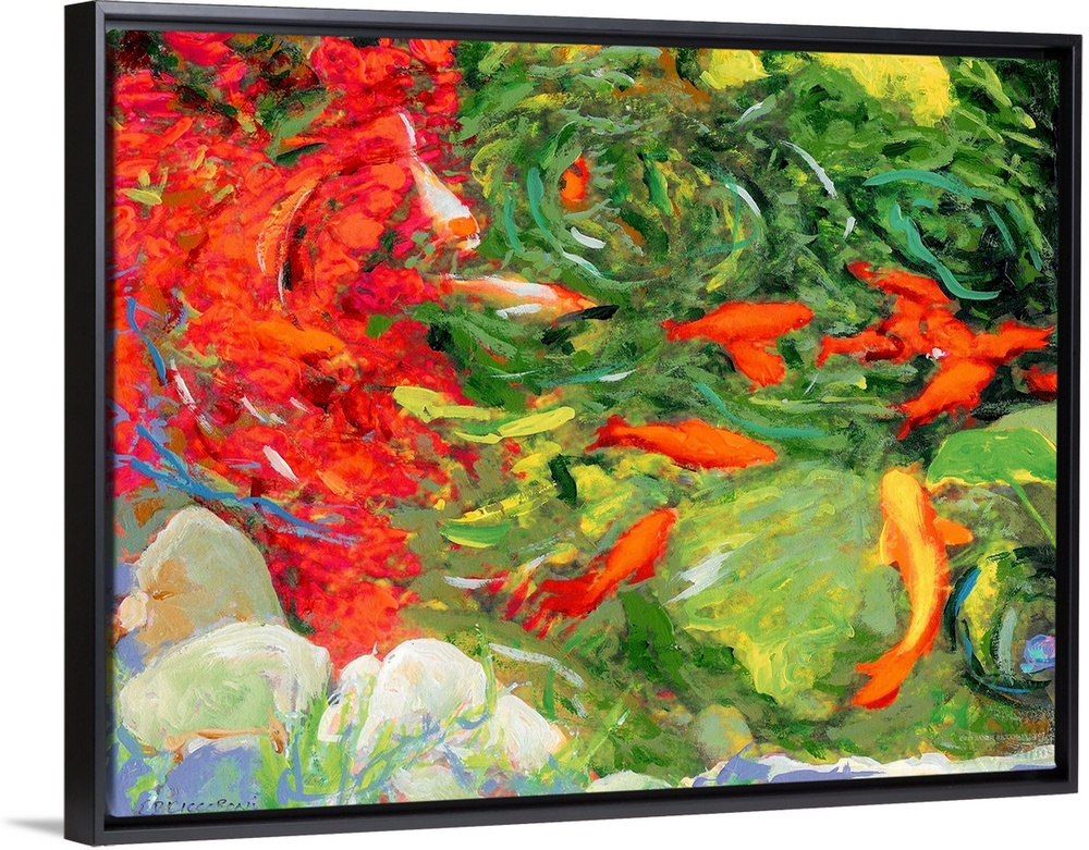 <p>Avrille's Koi Pond. Beverly Hills, California by RD Riccoboni 2007, an abstract post impressionist style painting. The word koi comes from Japanese. The original Japanese word koi simply means carp, including both the dull grey fish and the brightly colored varieties. A homonym of koi means 'love, affection' and koi are therefore symbols of love and friendship in Japan.</p>