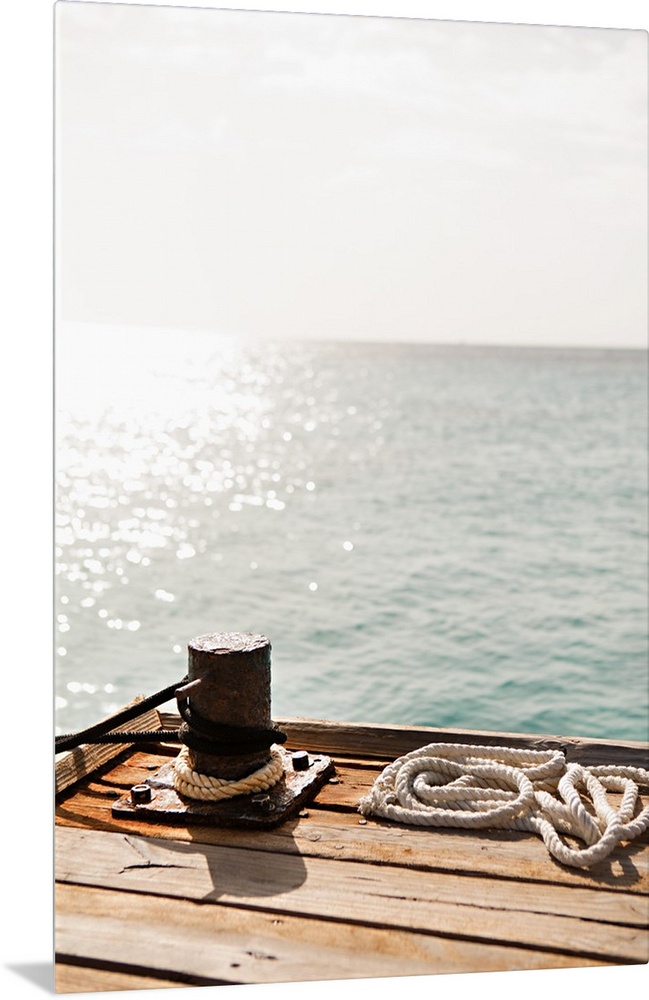 <p>Photograph of a floating dock waiting for a boat to tie up with the Caribbean in the background.</p>