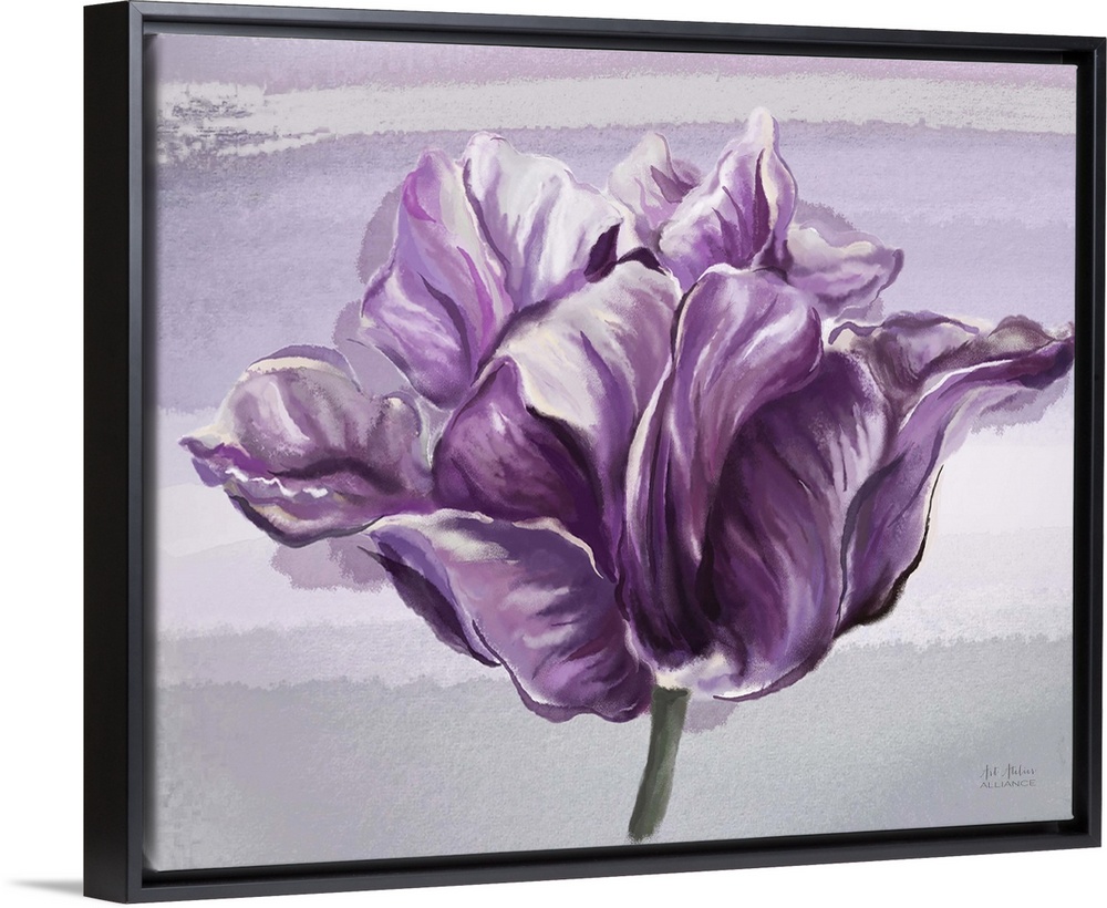 <p>Contemporary home decor art of purple flower against a light gray background.</p>
