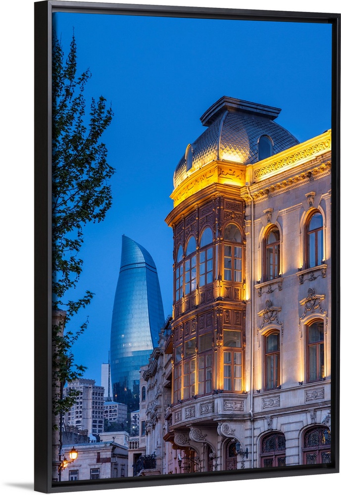 <p>Azerbaijan, Baku, Old City and Flame Towers.</p>