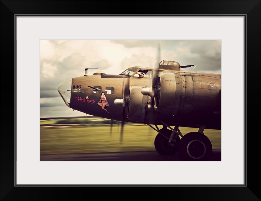 <p>A B-17G Flying Fortress bomber on takeoff.</p>