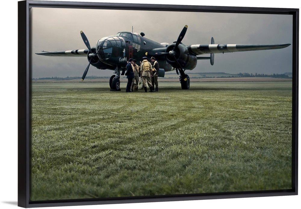 <p>A B-25 Mitchell bomber and crew at dawn</p>
