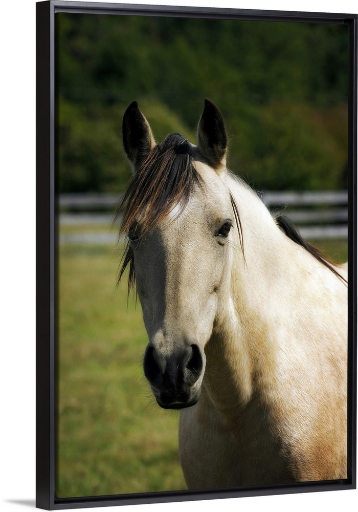 <p>Portrait of a horse looking directly ahead against a blurred background by photographer Alan Hausenflock.</p>