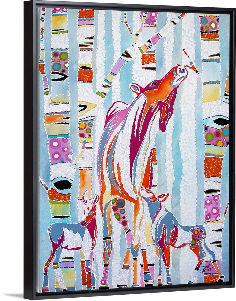 <p>Dawn Gerety was born in Sydney, Australia and raised across the globe in Girdwood, Alaska. As a lifelong Alaskan, she is moved by the natural splendor that has surrounded her her entire life – mountains, wildlife, rivers, wildflowers and outdoor activities. Dawn paints these images and creates her own language with a swipe of color or a rigid line of dots. She injects a fiercely whimsical vitality to Alaskan icons the only way she knows how.</p>