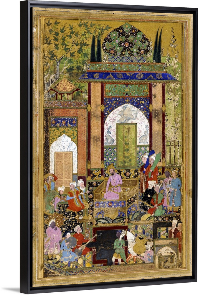 <p>Babur holding Court, 1589. Babur (1483 - 1530), conqueror from Central Asia who, succeeded in laying the basis for the Mughal dynasty in the Indian subcontinent and became the first Mughal emperor.</p>