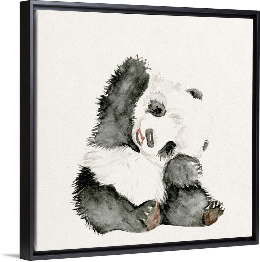 <p>Watercolor artwork of a cute baby panda waving.</p>