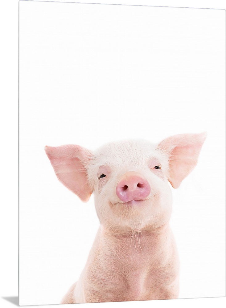 <p>A cute photograph of a smiling baby piglet in front of a white background. Perfect for a nursery, children's room or just about anywhere.</p>