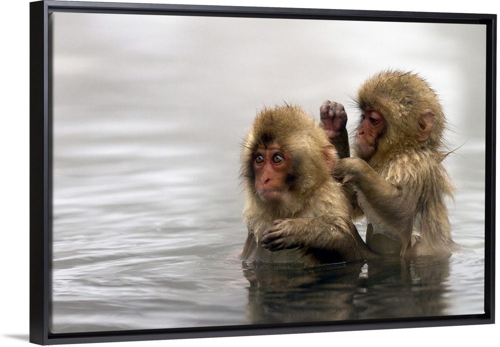 <p>Baby snow monkeys in Jigokudani monkey park near onsen town of Yudanaka, Nagano prefecture, Japan.</p>