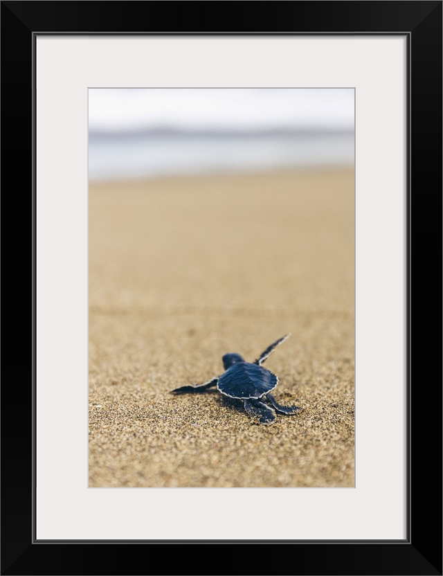 <p>Baby turtle at Pantai Pandan Sari, crawling on the sand; East Java, Java, Indonesia</p>