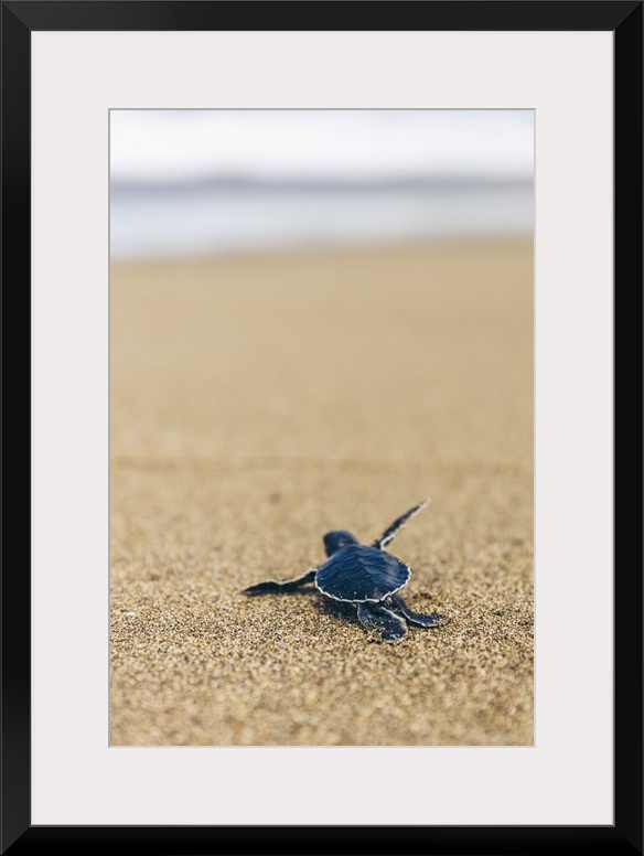 <p>Baby turtle at Pantai Pandan Sari, crawling on the sand; East Java, Java, Indonesia</p>