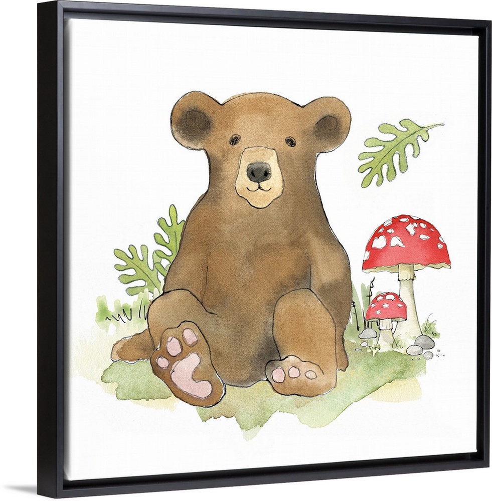 Art Children's Art Nursery Decorative Art Mushrooms Beth Grove Painting Watercolor Wildlife Brown Bear