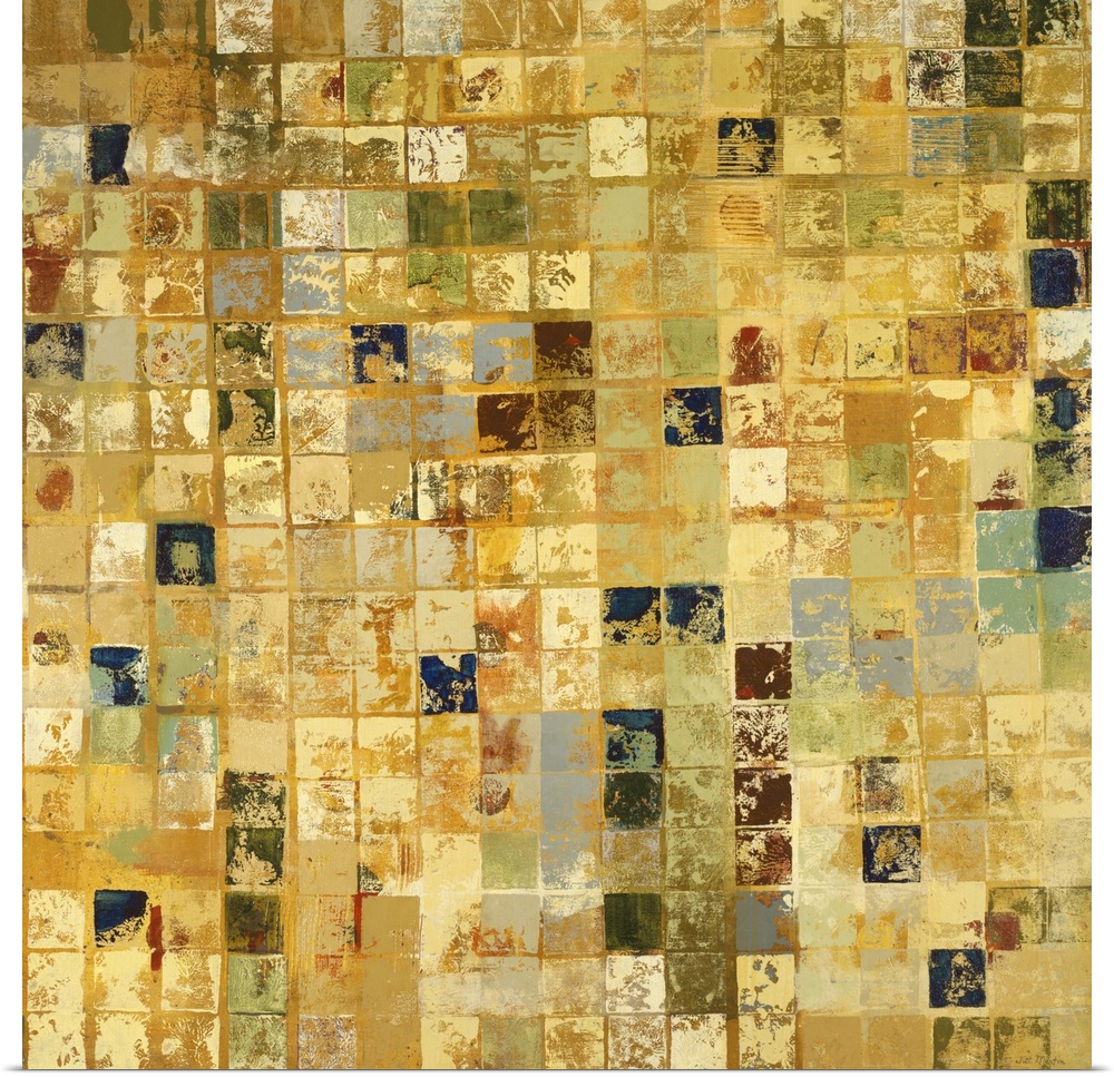 <p>Home decor artwork of a gold and earth toned mosaic.</p>