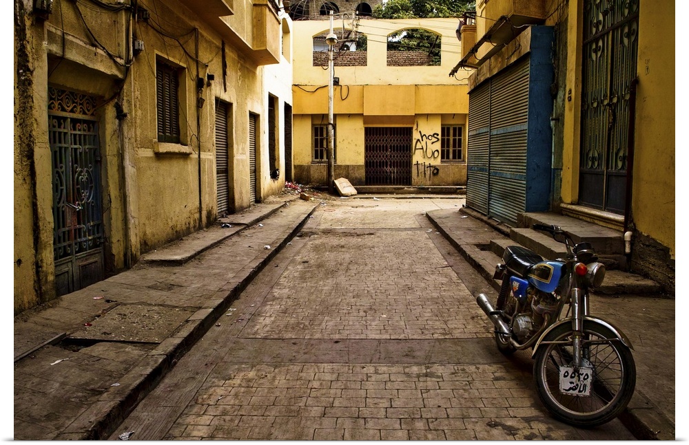 <p>Back street of Luxor Town, Egypt with motorbike</p>