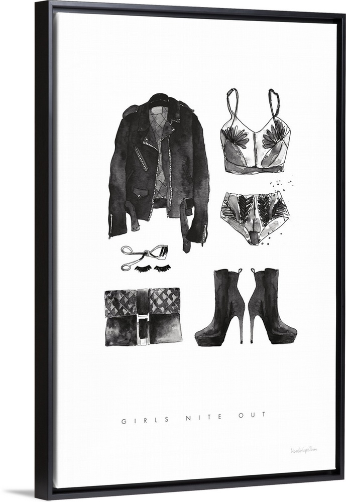 Art Art by Decor Style Glam Living Room Art Glam Living Room Black and White Wall Art Mercedes Lopez Charro Decorative Art Fashion And Beauty Purses and Bags Shoes Latin Art Painting Watercolor